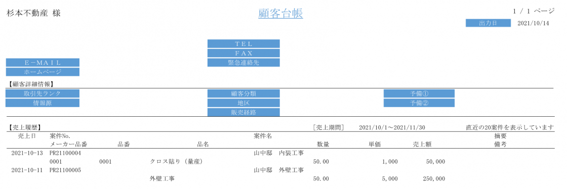 を設定することで、一見顧客の台帳をPDF形式で出力できます。