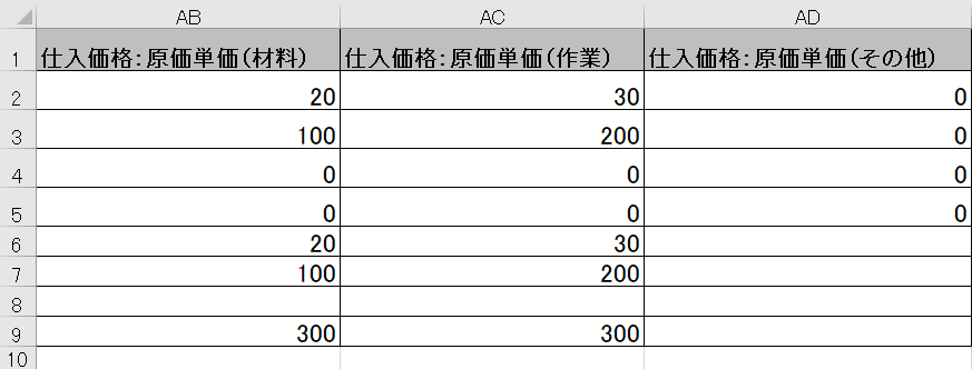 →半角数字を設定。 - AD列「仕入価格:原価単価(その他)」