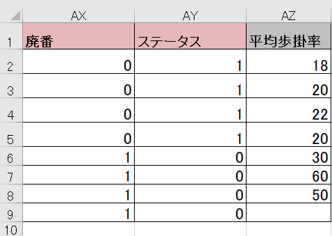 廃番:1 - AY列「ステータス」(そのマスタを使用するかどうか)