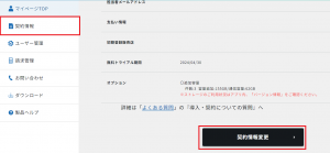 パスワード(初期):無料トライアル登録時に設定したパスワード - 「契約情報」内、「契約情報変更」を選択します。