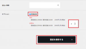 - 「オプション」の「容量追加」にチェックを付け、件数を選択してから「設定を保存する」をクリックして保存します。