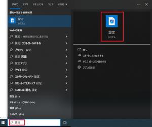 1.パソコン内の検索メニューから「設定」を検索して開く