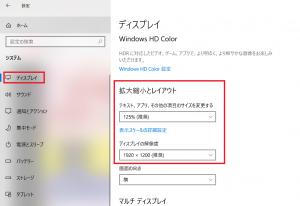 3.「ディスプレイ」の「拡大縮小とレイアウト」でテキストサイズ、ディスプレイの解像度をお好みの設定に変更