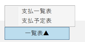 「一覧表」をクリックすると、「支払一覧表」と「支払予定表」を選択して表示できます。