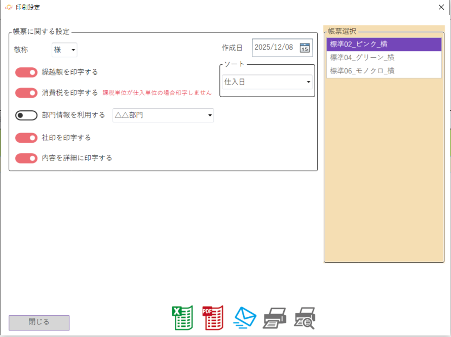 ※締め方法が「個別」のものは支払通知書の発行を行えません。