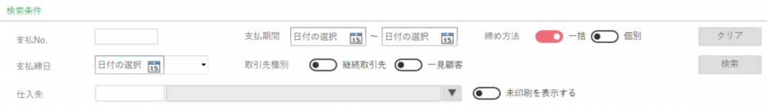 ONにすることで印刷処理のされていない支払のみを絞り込むことができます。