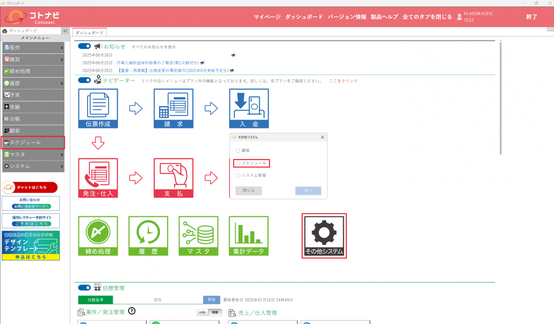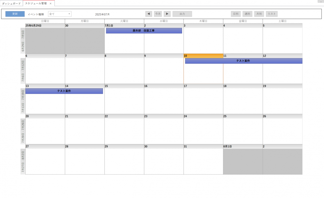 スケジュールでは、案件等のスケジュールをカレンダー形式で確認できます。