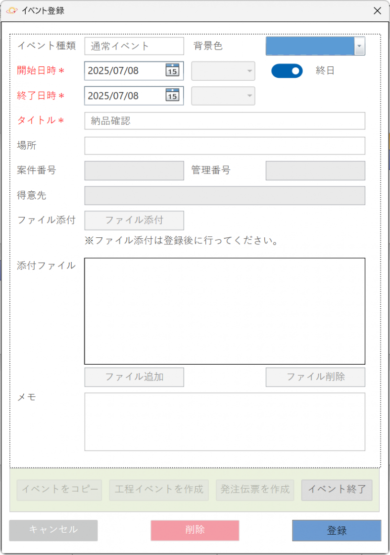 すでに登録されている「案件イベント」をダブルクリックすると、内容の変更ができます。
