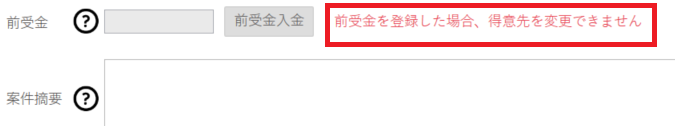 - 案件管理-基本情報 前受金に前受金登録後は得意先の変更ができなくなる旨を追加